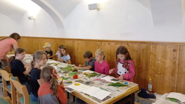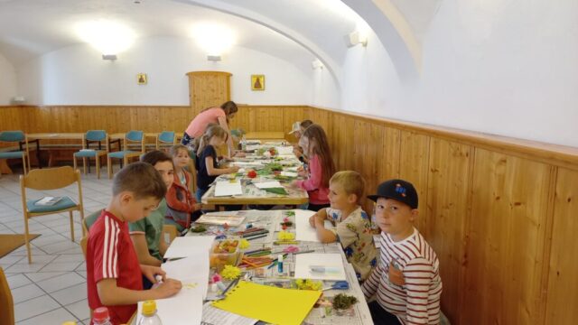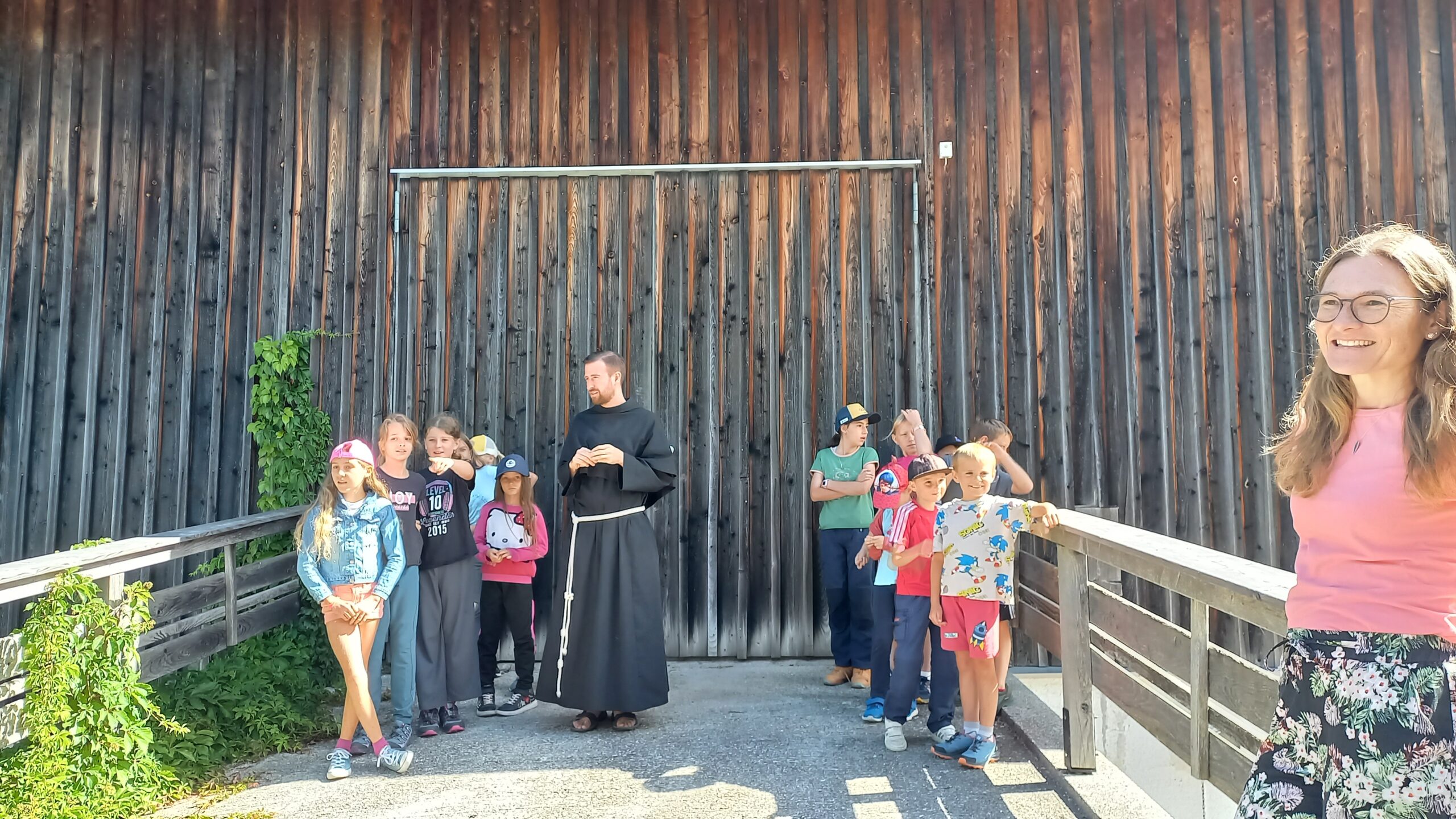 Bereits zum zweiten Mal fand am 03. September der Maria Ecker Kindertag statt. Bei herrlichem Sonnenschein konnte Br. Markus und sein Team zahlreiche Kinder zwischen 8-12 Jahren begrüßen. Thema in diesem Jahr war der Sonnengesang des Heiligen Franziskus. Genau vor 800 Jahren – also im Jahr 1224 – schrieb der Heilige aus Assisi dieses Lied. Die Kinder lernten Franziskus, seine Biografie und den Sonnengesang auf verschiedenste Art und Weise kennen. Jedes Kind gestaltete dann am Nachmittag seinen eigenen Sonnengesang in Form eines Leporellos. Natürlich kam auch Spiel und Spaß an diesem Tag nicht zu kurz. Mit einer kleinen Andacht am Mitteregg-Stadl endete der Tag und die Kinder gingen stolz mit ihrem selbst gebastelten Sonnengesang nach Hause.